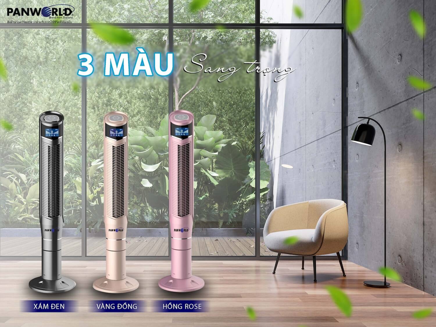 Quạt tháp Panworld PW-069H có 3 màu sắc hiện đại: Hồng Rose, Vàng Đồng và Xám Đen.