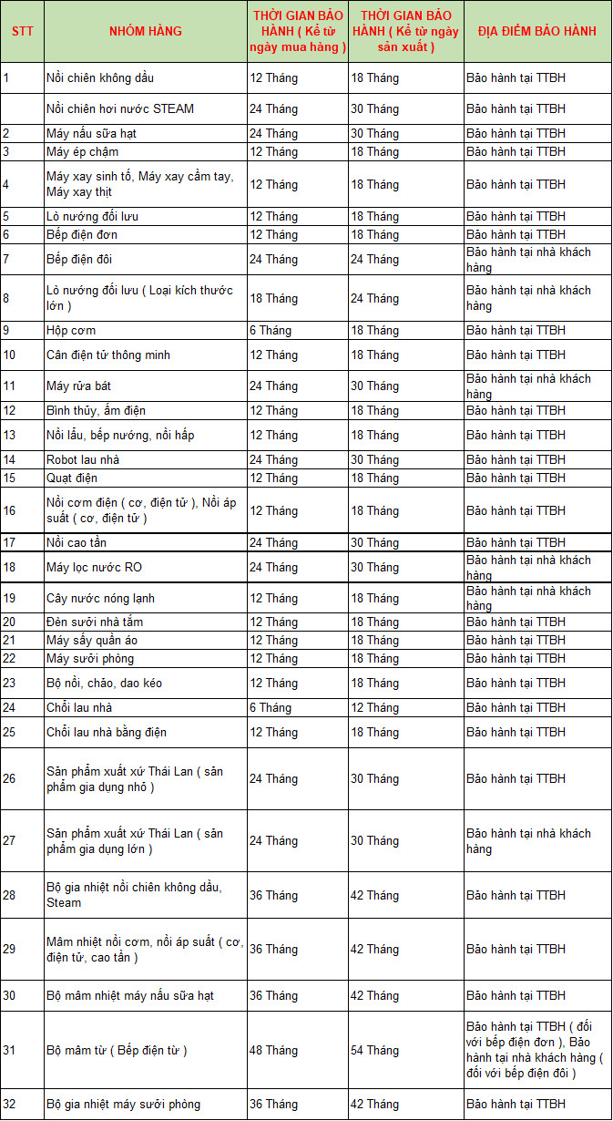 Thời hạn bảo hành = Ngày sản xuất + Thời gian bảo hành + 6 tháng (được tính cho những ai chưa kích hoạt phiếu bảo hành điện tử)