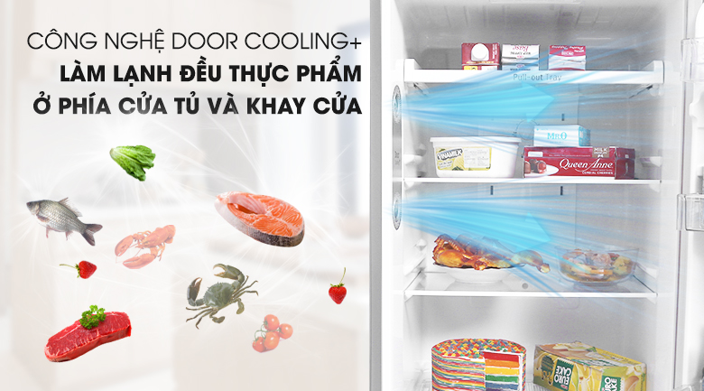 Công nghệ DoorCooling+ giúp giữ cho thực phẩm ở vị trí cửa và khay cửa vẫn được làm lạnh hiệu quả, ngăn chặn tình trạng biến chất hay hư hỏng thực phẩm.