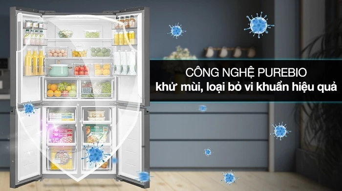 Công nghệ diệt khuẩn Pure Bio và hệ thống khử mùi Hybrid Bio giúp thực phẩm tươi lâu, sạch mùi.