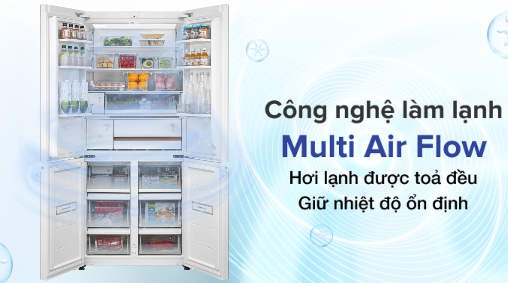Luồng khí lạnh vòng cung: Làm lạnh đồng đều, hạn chế thực phẩm bị đông đá hoặc hư hỏng.