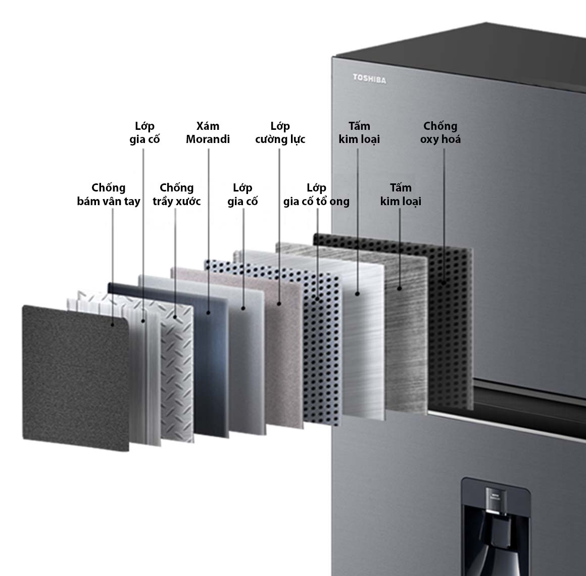 Bề mặt Morandi dẫn đầu phong cách thời trang tô điểm cho Tủ Lạnh Toshiba GR-RT435WEA-PMV(06)-MG.