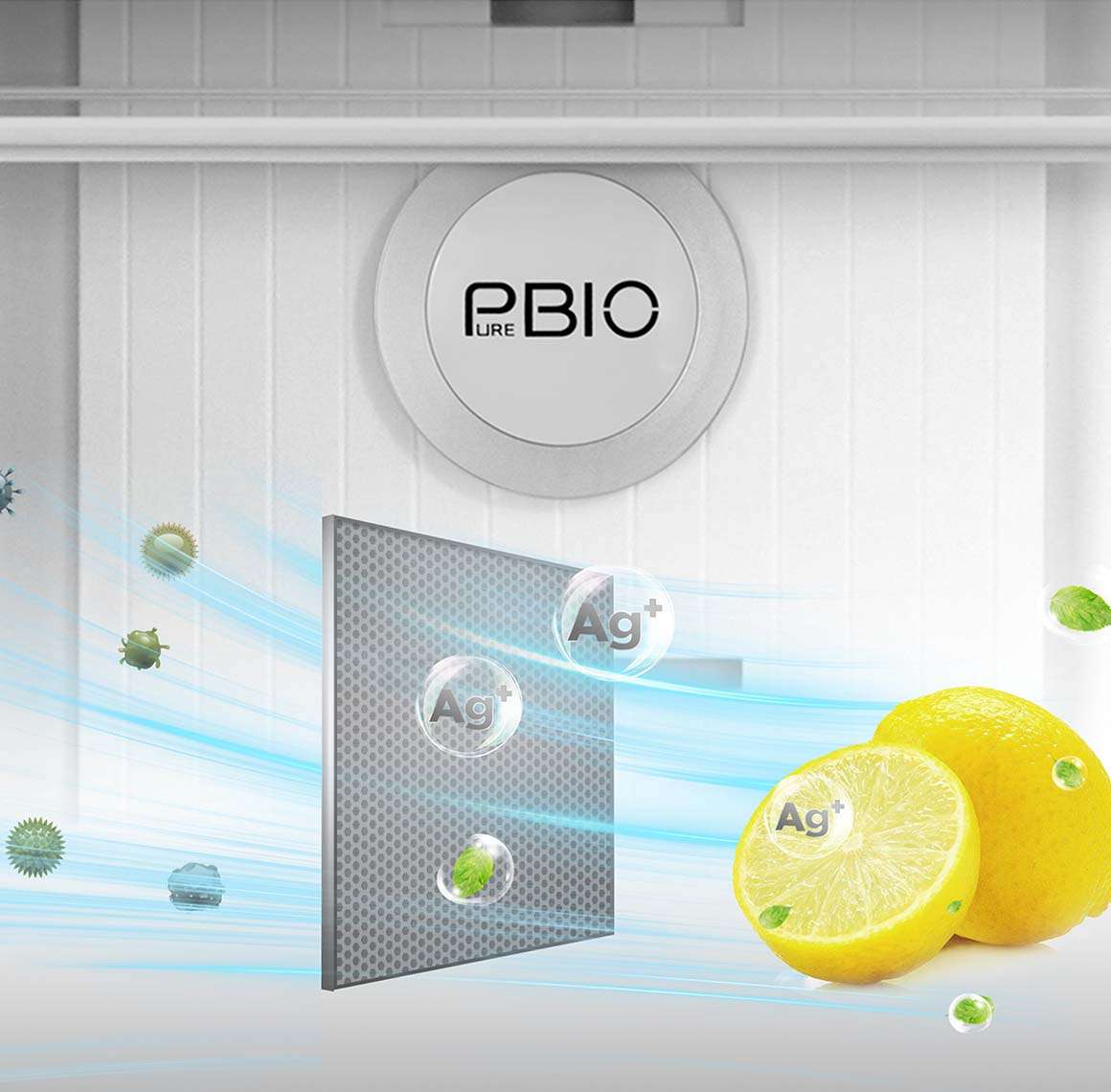 Công nghệ PureBIO với thiết kế tổ ong nhúng tinh thể Bạc Ag+ và than hoạt tính được trang bị trên Tủ Lạnh Toshiba 366 lít.