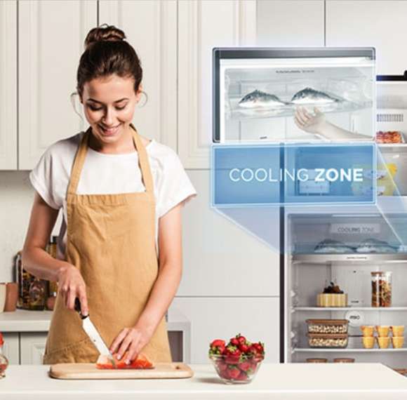 Khi bảo quản thịt, cá trong ngăn Cooling Zone -1 độ C, thức ăn luôn tươi ngon, mùi vị không bị biến đổi trong 1-2 ngày.