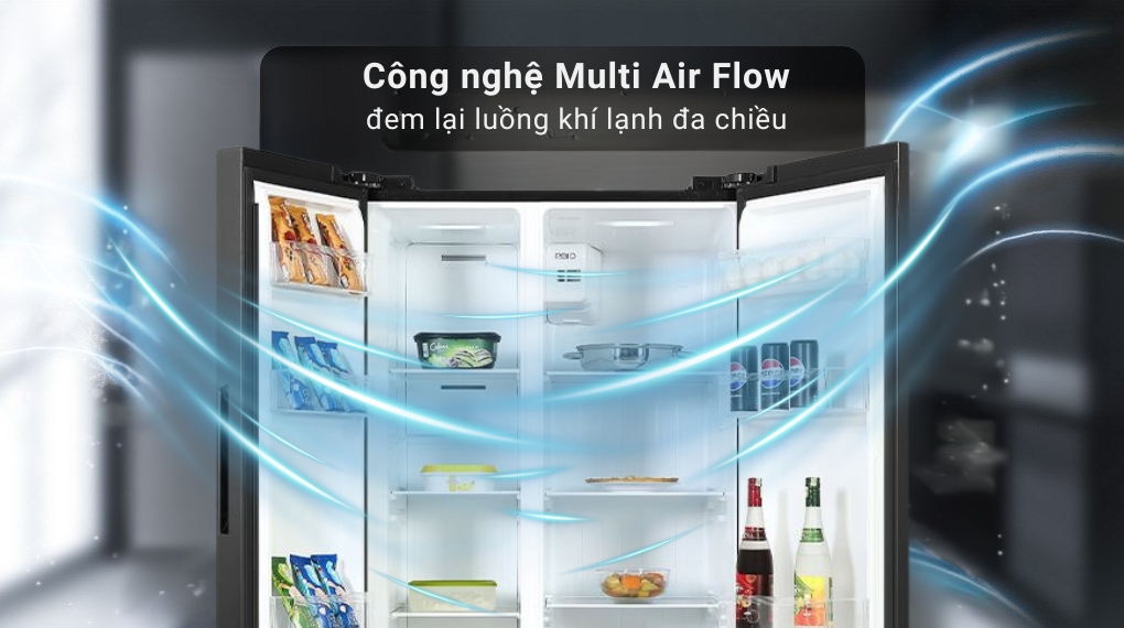 Tận hưởng luồng khí lạnh đa chiều Multi Air Flow, lan tỏa đều khắp mọi ngóc ngách tủ lạnh. Hơi lạnh được phân bố đồng nhất, giúp thực phẩm được làm lạnh và cấp đông nhanh chóng, loại bỏ nỗi lo nhiệt độ không ổn định gây hư hỏng.