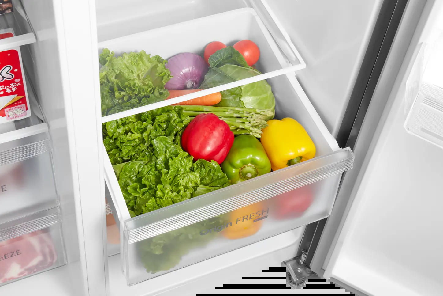 Đặc biệt, ngăn rau củ Origin Fresh được thiết kế dạng ngăn kéo tiện lợi, giúp bạn dễ dàng sắp xếp và bảo quản rau củ, trái cây. Khả năng điều chỉnh độ ẩm thông minh của ngăn này còn kéo dài độ tươi ngon của thực phẩm một cách hiệu quả.