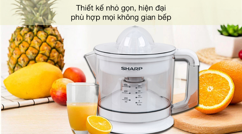 Máy vắt cam Sharp EJ-J256-WH có kiểu dáng nhỏ gọn, màu trắng tinh tế, phù hợp với nhiều không gian bếp. Các bộ phận có thể tháo rời, giúp việc vệ sinh sau mỗi lần sử dụng trở nên dễ dàng hơn. Ngoài ra, thiết kế tay cầm chắc chắn giúp việc rót nước cam trở nên thuận tiện.